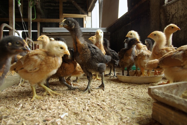 保温している飼育ケースから出れるようにして元気に鶏舎内を走りまわっています。