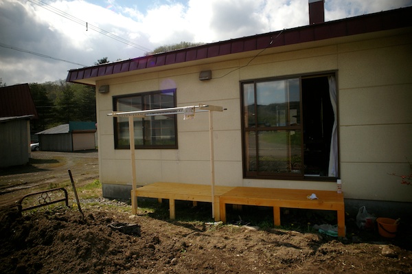 左右で色合いが違っちゃってますが。便利な物干し竿スタンド付きです。