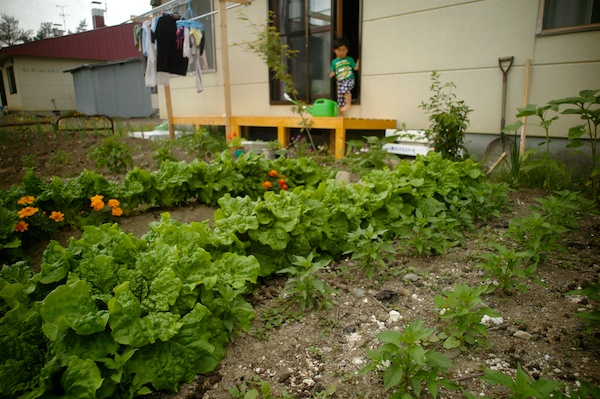 我が家の家庭菜園。賃貸住宅にしては広い畑をめいっぱい使って鷹の爪、サンチュ、ネギ、大根、大葉などをぼちぼちと。
