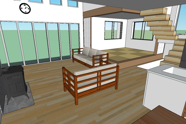 居間の上は吹き抜けで2Fの各部屋とつながる。