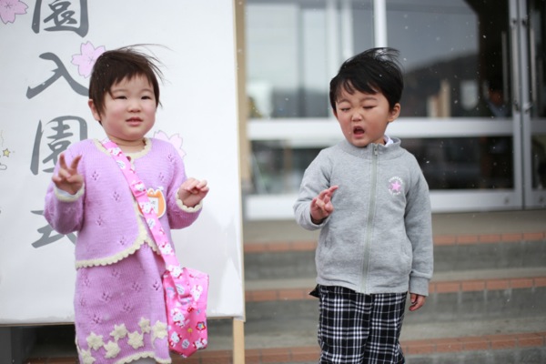 こども園の玄関での撮影はちょっと寒かったみたい・・・